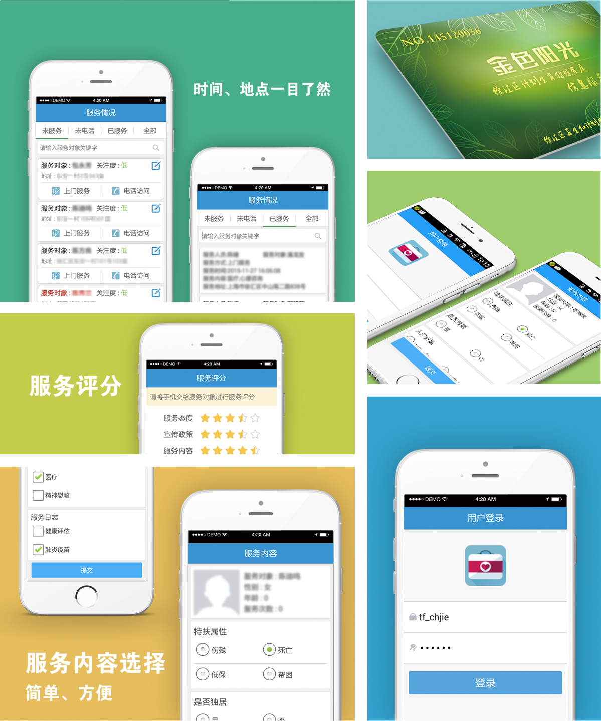 向区域内的失独老人提供医生、护士、护理人员服务,通过APP进行电话沟通服务、上门医务服务的管理和数据采集,完成医疗服务和心理疏导。